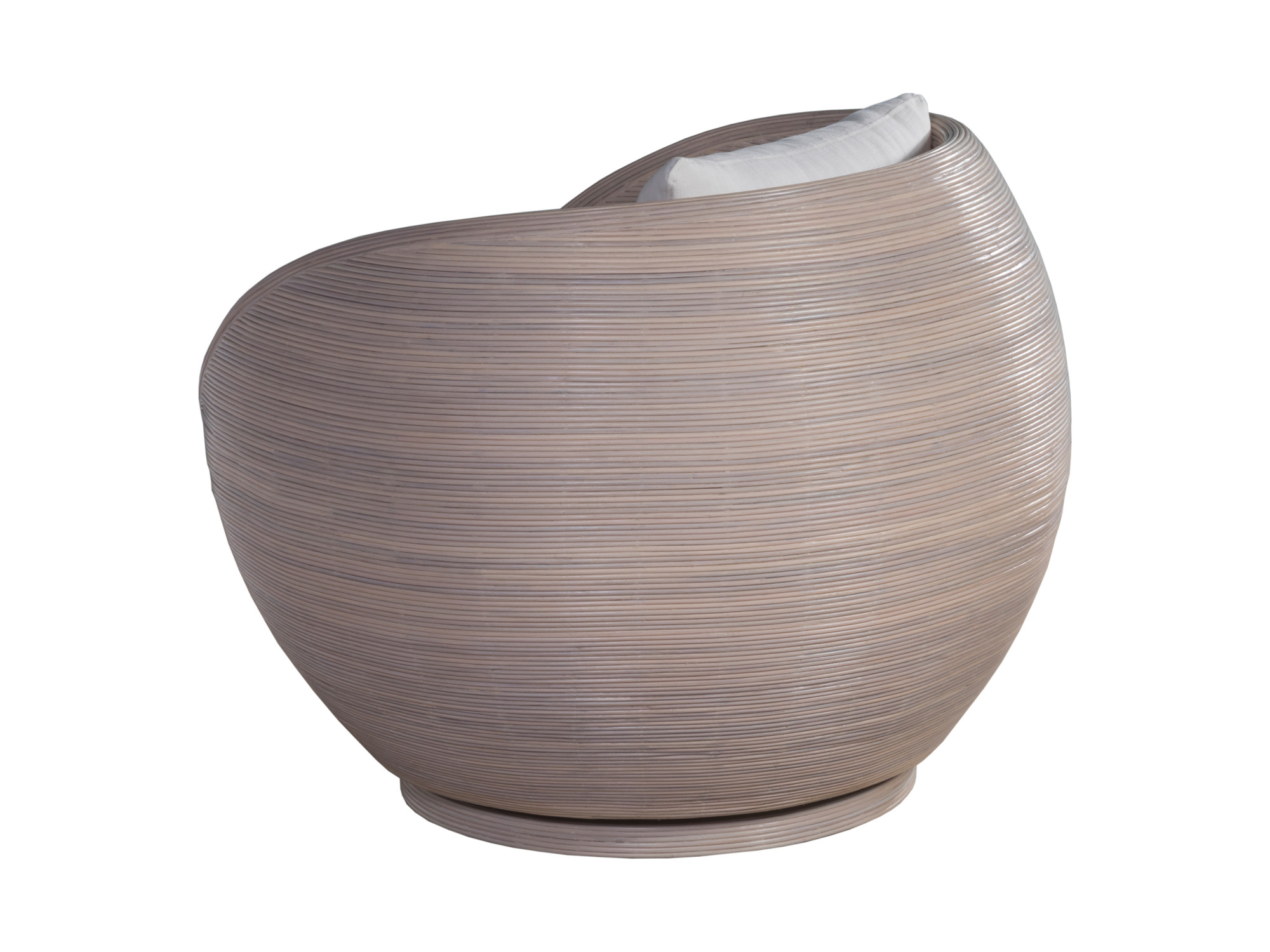 This 1960? antique reproduction is a period-perfect represenation of Solimar? vibe, featuring an orb silhouette wrapped in pencil rattan with a white wash finish revealing natural variation in the organic material. Available in COM or your choice of fabrics.